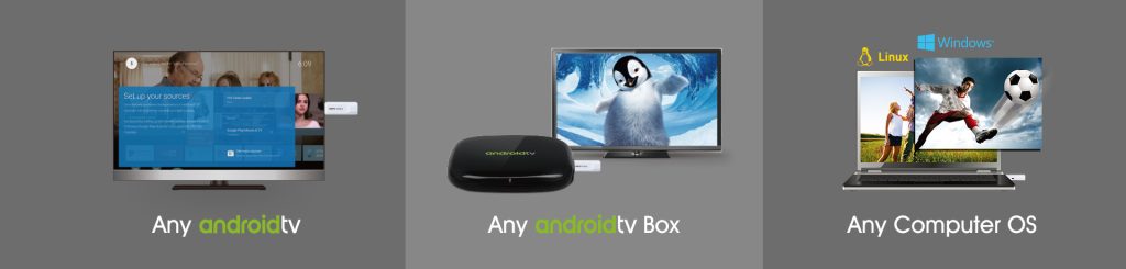 By using Google’s TIF and Live Channels application, you can plug our TV Tuner to any Android TV OS device for watching free to air Digital TV.